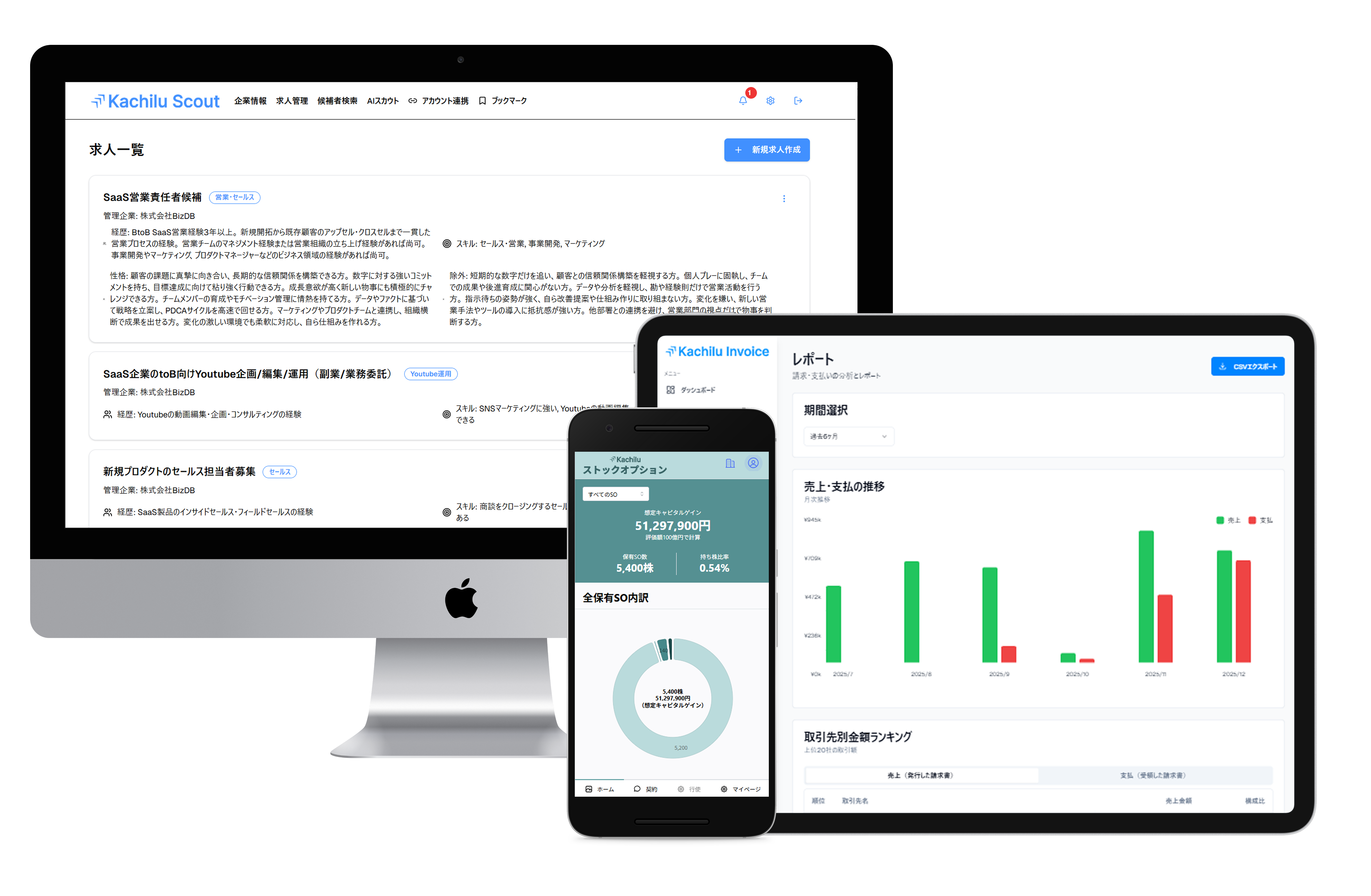 Kachilu Scoutのスカウト送付機能などAI活用を前提とした機能を搭載しており、業務の効率化・自動化を実現しています。
